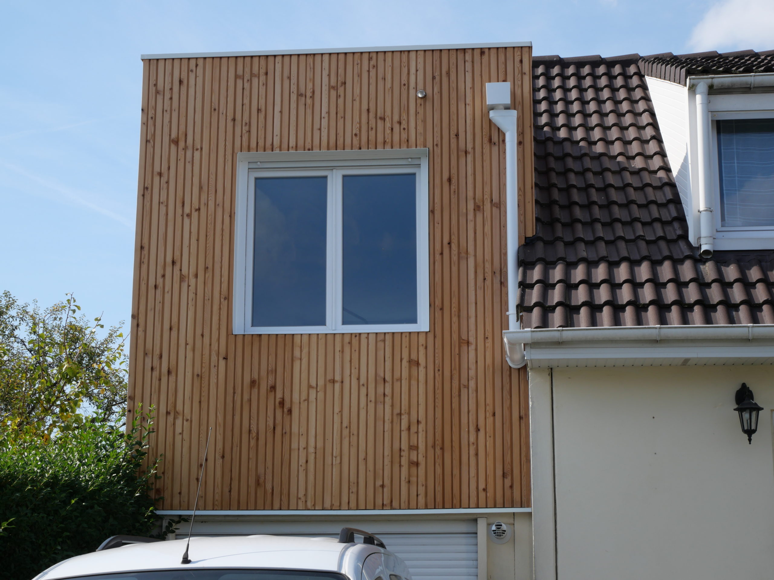Nous avons réalisé cette extension de maison en surélévation au dessus d’un garage ; l’objectif était d’ajouter une chambre à coucher pour notre client.